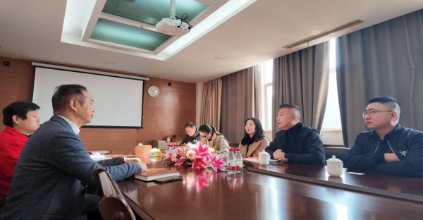 图:Bob Zou会长(右二)与台州玉环市商务局高副局长(左二)及其他企业代表在座谈会上就北美市场拓展进行深入交流。