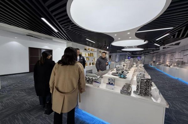 图:Bob Zou 会长一行在台州永裕工业有限公司展厅,现场了解企业汽车零部件产品体系及技术应用情况。